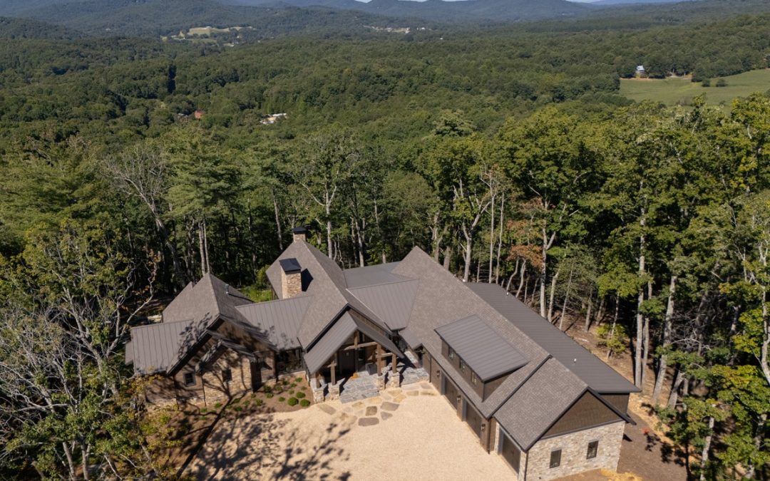 Overview Of Home Site Blue Mist Custom Home. The bird’s eye view showcases the generous pea gravel motor court of this luxury home.