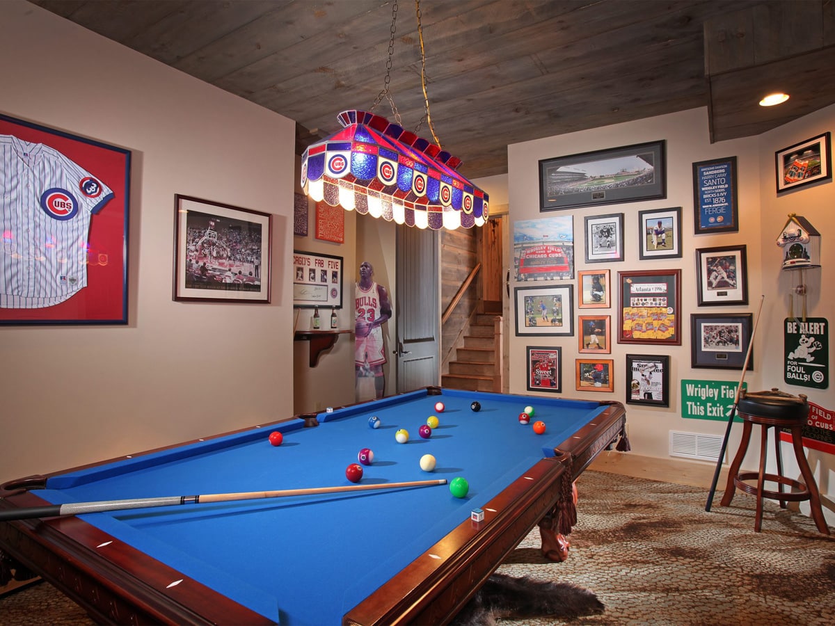 The kitchen, dining and great room spaces each open onto porches, doubling the entertaining spaces. The primary master suite and guest suite are also on the main level. The second level is dedicated to a large “scrap booking” space and television den. This family are huge Cubs fans, which you see evidence of in the Terrace Level den and billiards rooms. Each of the secondary bedrooms’ French doors open onto porches.